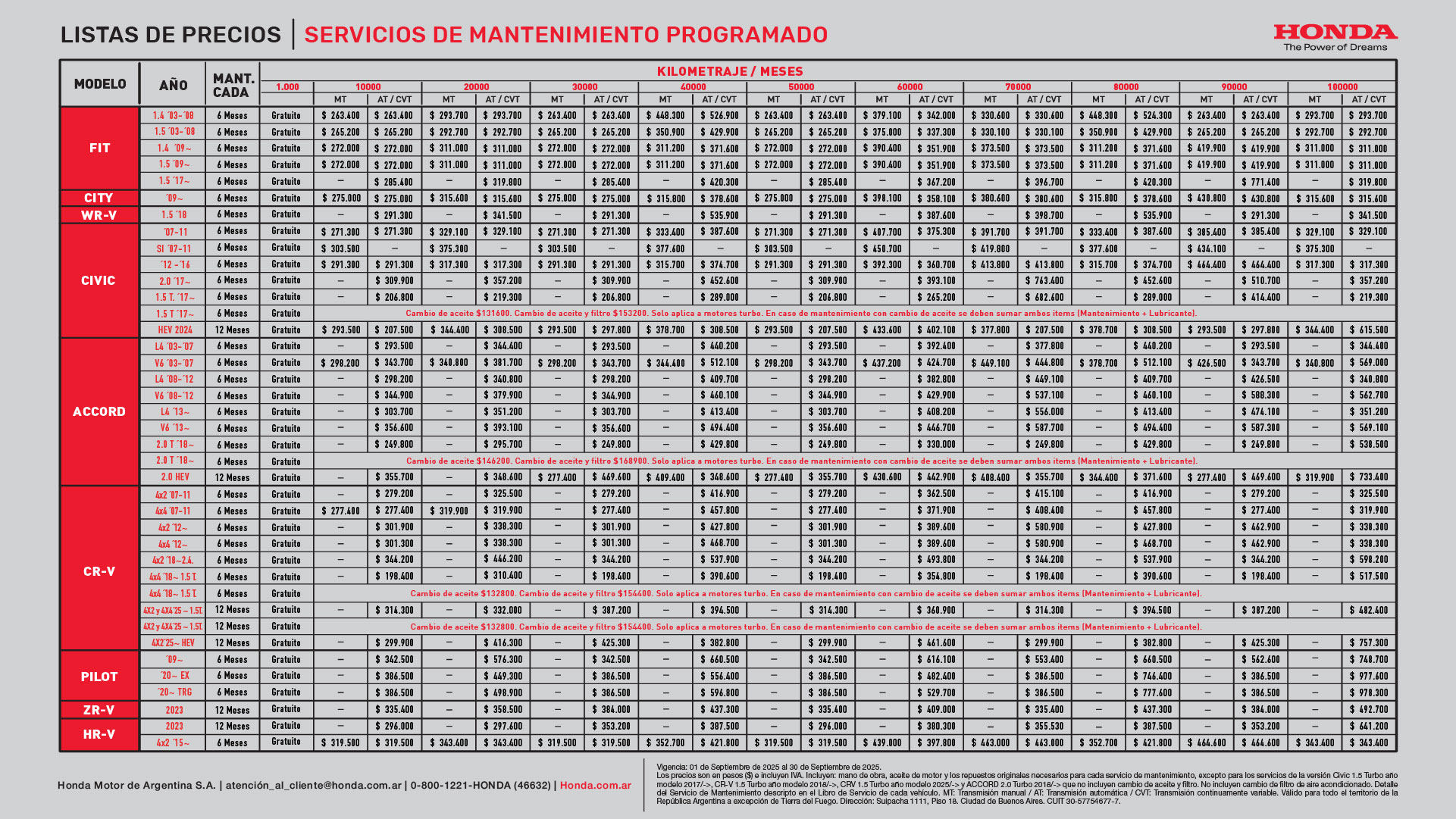 El mantenimiento regular es necesario para asegurar la confiabilidad y durabilidad de su Honda, ayudando también a reducir el costo general de las reparaciones. Para realizar el mantenimiento programado establecido para su automóvil, acérquese a nuestro Servicio Oficial tan pronto como llegue al kilometraje indicado o haya transcurrido el tiempo indicado.